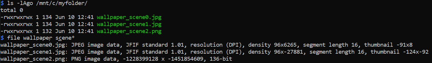 After the shellcode is consumed by the encryption program and the fake image files were created, these were checked to ensure that Checking the magic bytes of each file, confirms that the created faked files are considered image files as determined by the headers.